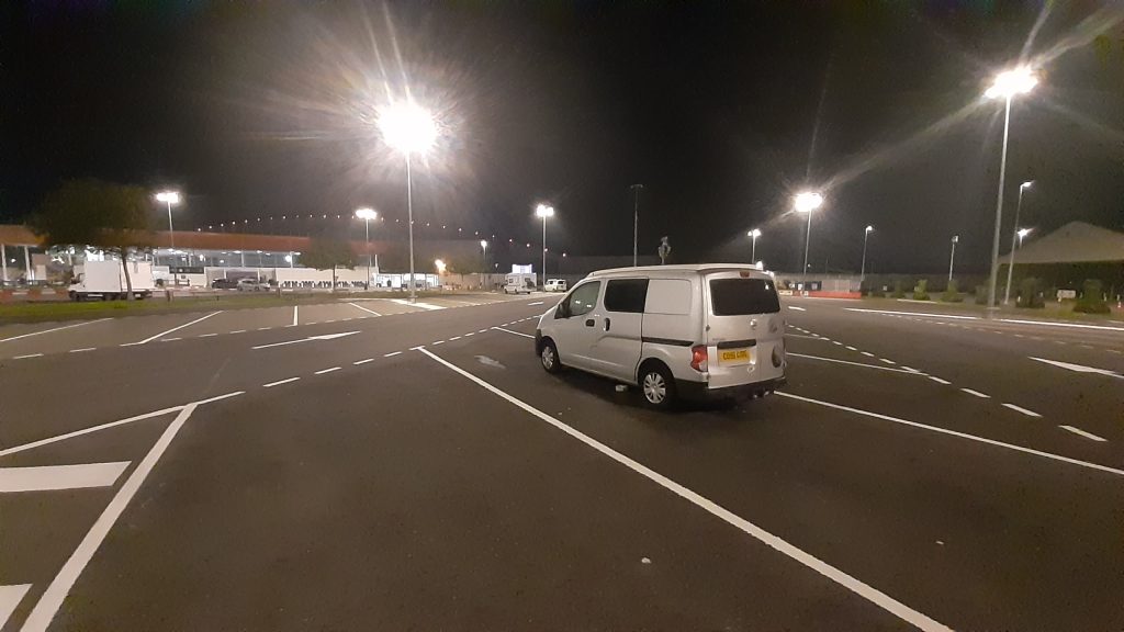 Our little Campervan waiting at the Shuttle in Calais after covering nearly 2000 miles travelling around France.